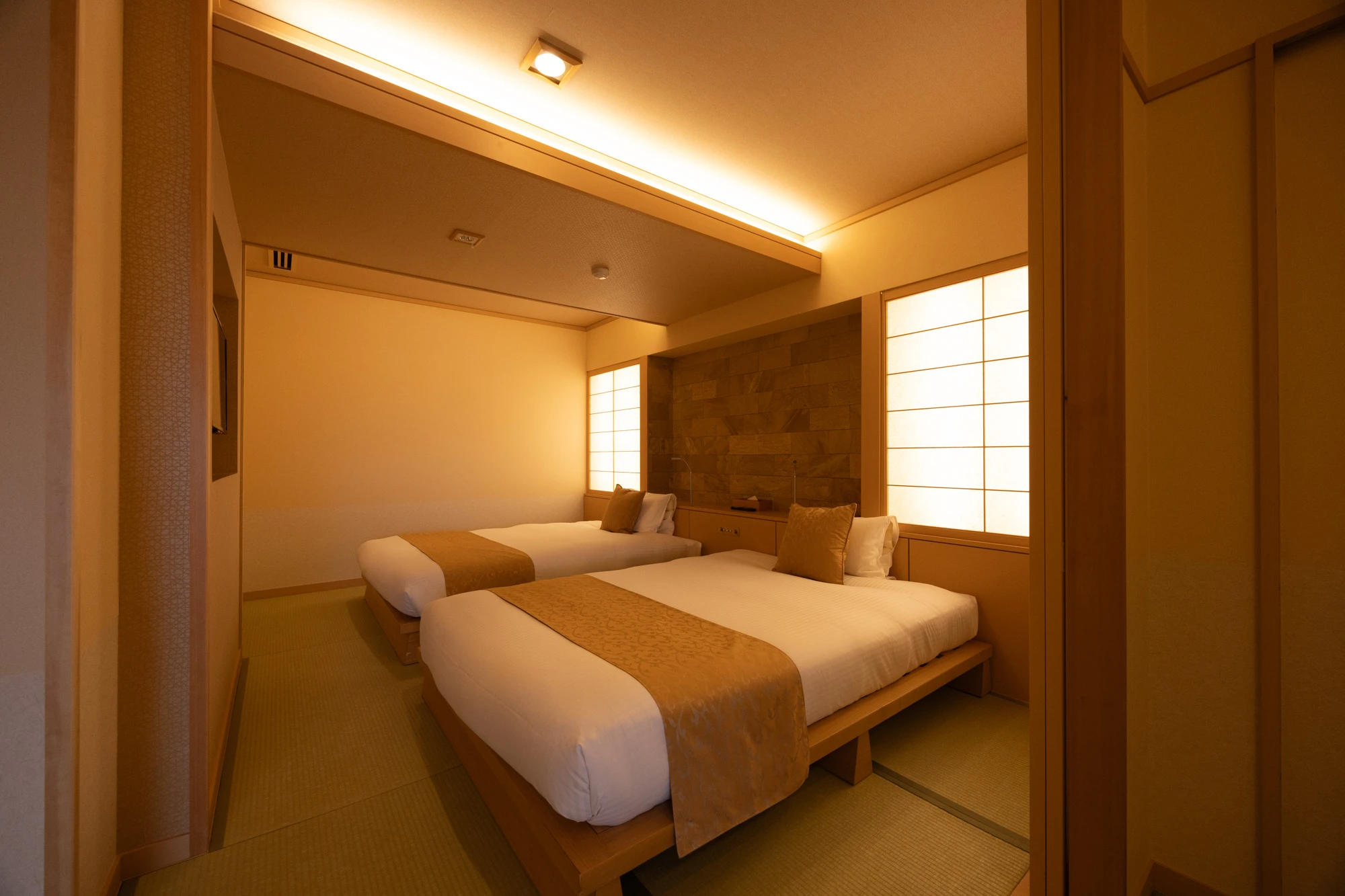 | Layout | Japanese-Western Room (17.5-tatami) + Twin Beds + Open-air Bath |