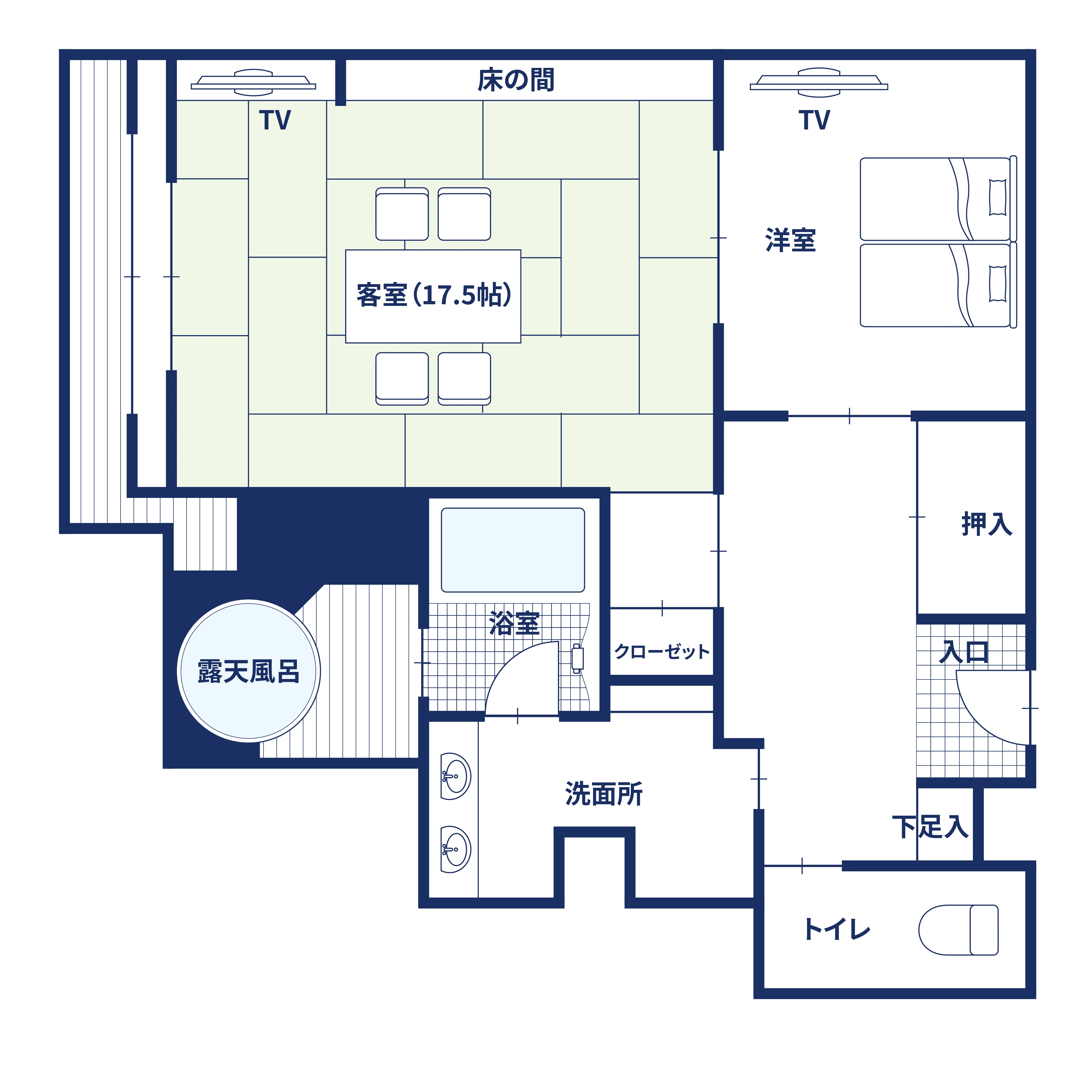 | 間取り | 和洋17.5帖+TW+露天 |